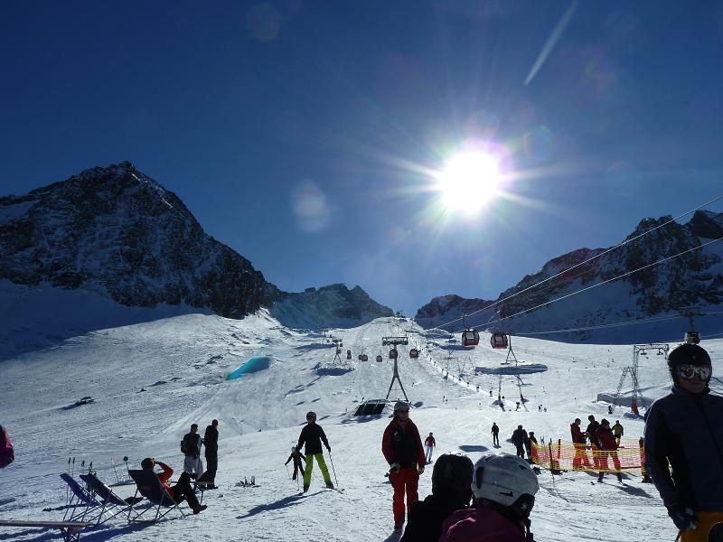 Gestern -> Sölden, Wetter war perfekt und der Schnee war auch sehr gut nur es waren sehr viel Leute unterwegs (ich weiß es war nichts anderes zu erwarten…) aber das trübte etwas den Skispaß da ich echt Angst um meinen Großen hatte, den einige waren „Harakiri – mässig“ unterwegs…