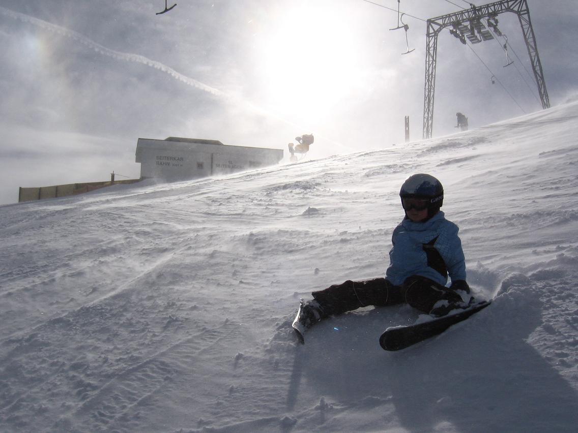 - Das Thema Parallelschwung ist hier noch nicht relevant. Wie gesagt, es kommt irgendwann sowieso von selber. Aber hier scheint mir vor allem das Gleichgewicht noch nicht weit genug zu sein. Also Geduld!