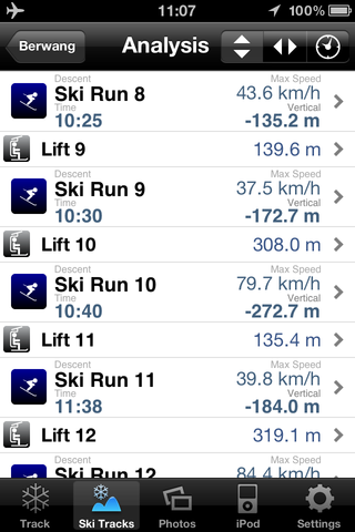 das Tool logt die Abfahrten mit und erkennt selbstständig anhand der Änderung der Höhenmeter ob es sich um eine Abfahrt oder um Liftfahrten handelt. Ausgewertet werden kann dann je Track oder gesammt: Höhenmeter, durchschnittl. Tempo, Max Tempo, Distanz, Start und Endhöhenmeter, maximales Gefälle, Zeit.