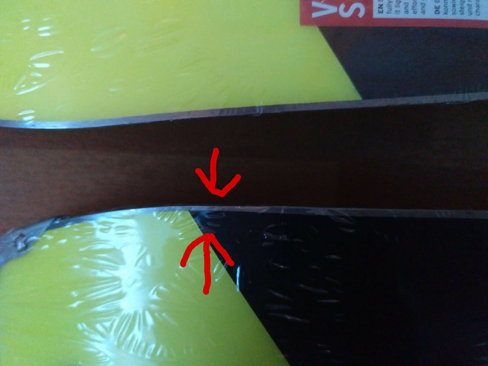 Die Kannte ist an einer Stelle im vorderen Bereich nur halb so breit wie am Rest der Ski. Es betrifft nur einen der beiden Ski und nur diese eine Stelle. Also wohl eindeutig ein Produktionsfehler. Die Kannte ist an der Stelle nur knapp über 1mm breit.