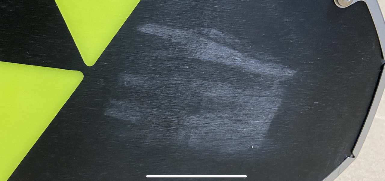 Leider hat ein Ski vorne im Bereich des Rockers einen Grauschleier bzw. einen leicht angekratzten und grauen Bereich.