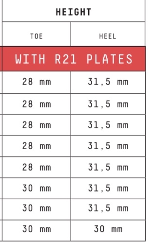 Bei Rossignol sind die Standhöhen der Rennbindungen inkl. Platte durchgehend am Hinterbacken höher (!) wie der Vorderbacken.