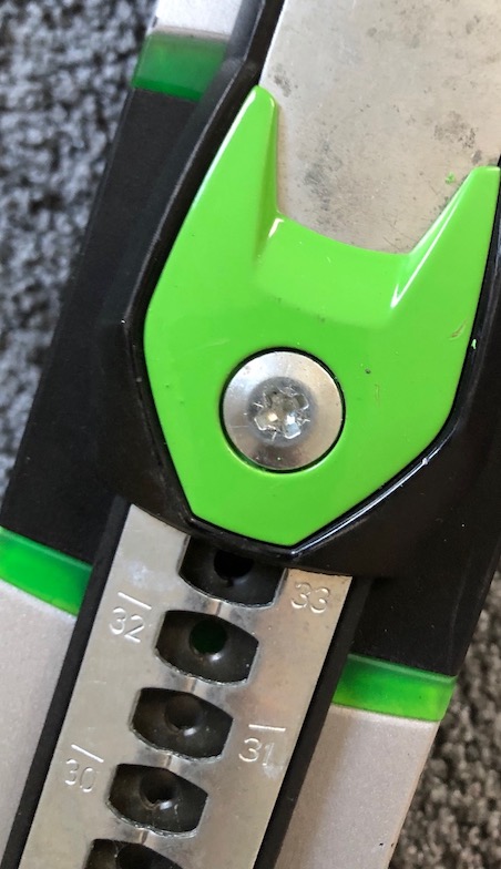 Nun zum Problem: den hinteren Anpressdruck stellt man ja durch den Hebel hinten ein. Ich habe es jetzt so eingestellt, dass der Skischuh rein optisch gut reinklickt. Aber ich verstehe die Aussage der Markierung nicht. Zu was soll sie passen? Sie verändert sich irgendwie gar nicht, egal, was ich anstelle?