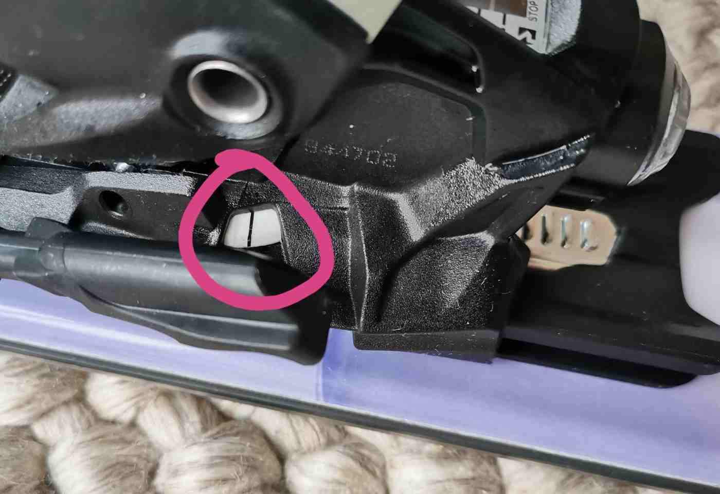 ich benötige mal Hilfe bei der richtigen Einstellung des Anpressdruckes bei einer Marker Squire 11 TCX. Lt. Anleitung soll die Schraube bündig mit dem Gehäuse abschließen. Nun ist um das Schraubloch herum aber so ein schräger Kunststoffrand vorhaben, der kein klares "bündiges" Abschließen ermöglicht. Soll nun die untere Kante oder die obere Kante als Bezugspunkt genommen werden? Oder dazwischen? Oder doch nur das Gehäuse ohne diese ringhafte Erhöhung? Siehe Foto.