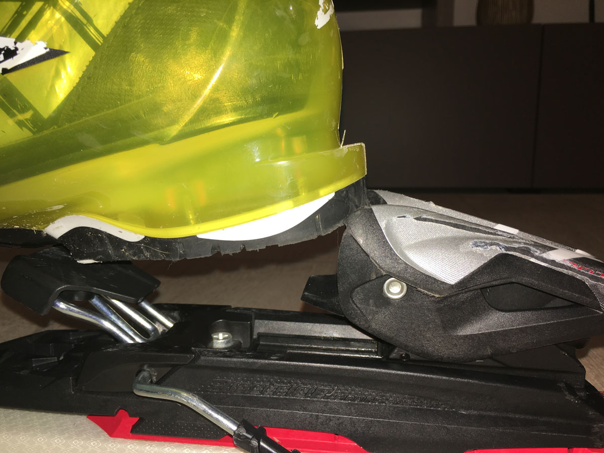 Skischuh passt gerade noch in die Bindung. OK?