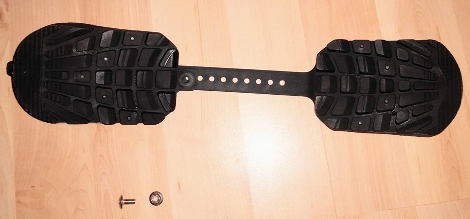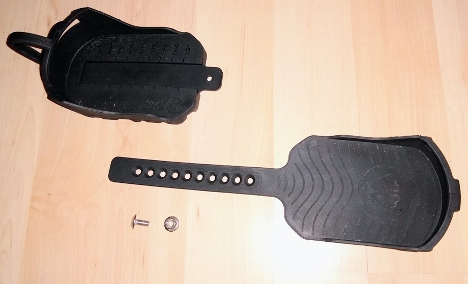Ich würde auch entgegen der Sidas-Verpackung, den Schraubenkopf nach unten montieren, somit ist es eher unwahrscheinlich, dass man beim Treppensteigen, mit der Mutter an einer Kante hängenbleibt. Platz ist genug vorhanden (siehe Bild) da der Absatz des Schuhs weiter hinten ist. Die Schraube und Mutter ist aus Edelstahl d.h. gegen Korrosion schon mal nicht schlecht, trotzdem würde ich etwas Kupferpaste oder vergleichbares auf das Gewinde geben.