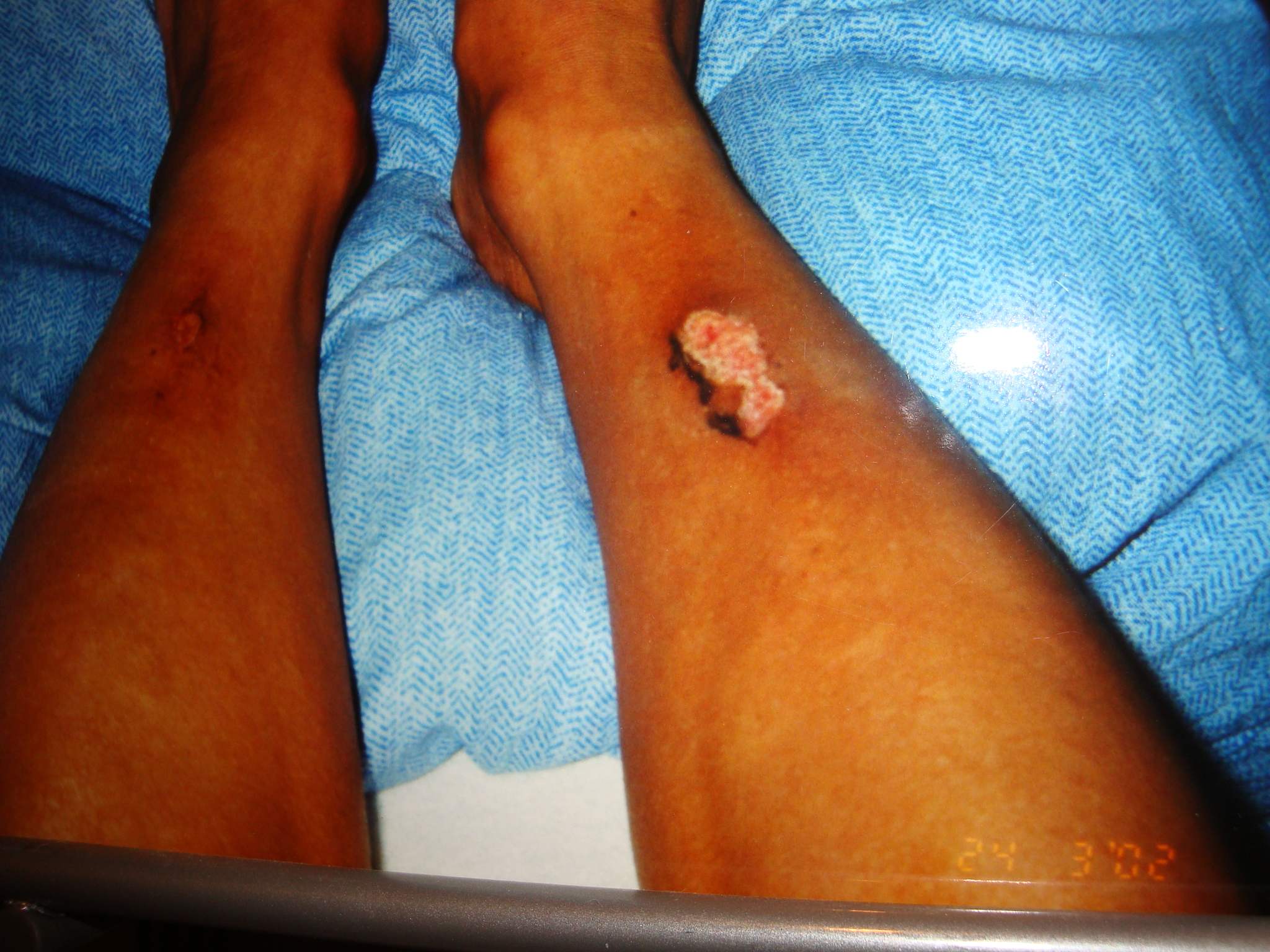 Nein, ich habe weder einen Diabetes, noch Krampfadern, eine chron. venöse Insuffizienz oder pAVK (Durchblutungsstörungen in den Beinen). Es ist ein absolut berechtigter Gedanke bei dem Bild, ohne Frage. Erklärend sollte ich vielleicht offenbaren, dass ich Arzt bin (Neurochirurgin) und meine Wundversorgung professionell ist.
