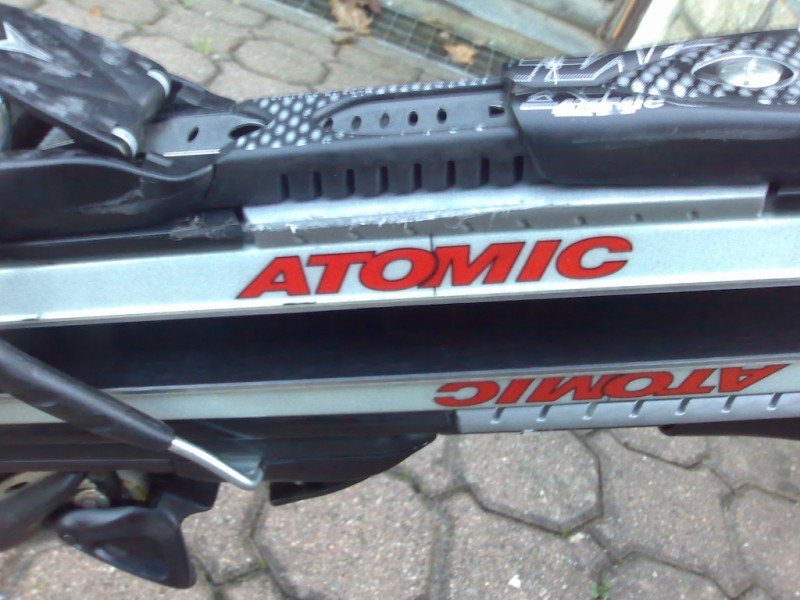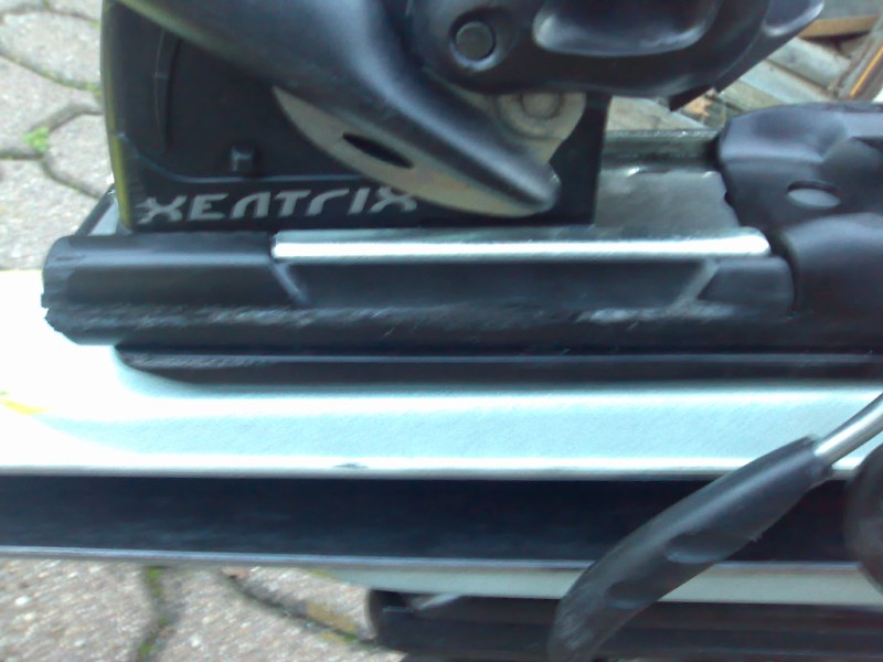 Da meine Freundin den Ski abgeholt hatte, konnte ich ihn erst zu Hause prüfen, dabei stellte ich fest, dass eine Bindung auf der rechten Seite fast durchgehend abgeschürft war (siehe Anhang).