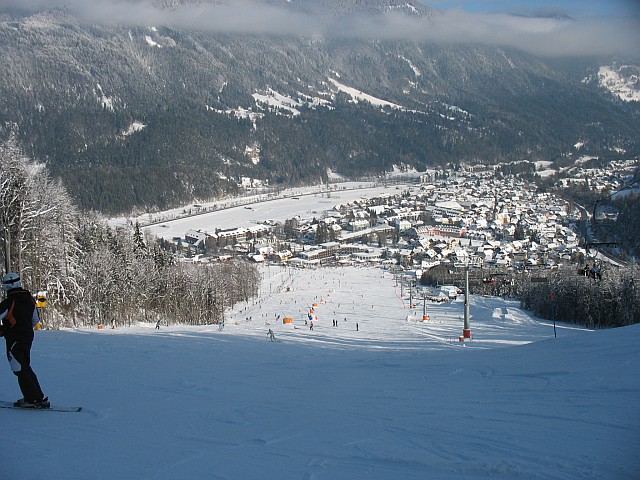 die Sonne ist ab nachmittags auf den Skibergen weg, die beiden "Skigebiete" Kranjska Gora und Podkoren sind zwar miteinander verbunden, aber erreichen kann man sie nur über recht steile (rot bis schwarze) Pistenabschnitte - nichts für Anfänger, obwohl es gerade in Podkoren - neben der Weltcup-Strecke - sehr tolle blaue und wenig frequentierte Pisten gibt.