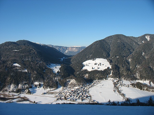 die Sonne ist ab nachmittags auf den Skibergen weg, die beiden "Skigebiete" Kranjska Gora und Podkoren sind zwar miteinander verbunden, aber erreichen kann man sie nur über recht steile (rot bis schwarze) Pistenabschnitte - nichts für Anfänger, obwohl es gerade in Podkoren - neben der Weltcup-Strecke - sehr tolle blaue und wenig frequentierte Pisten gibt.