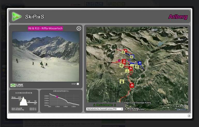 Man muss nur ein Plugin von Google-Earth laden und schon kann man sich die Skigebiete wirklich genau ansehen und wie in Google-Earth zoomen und kippen - so sieht man dann auch wie steil die Pisten sind...