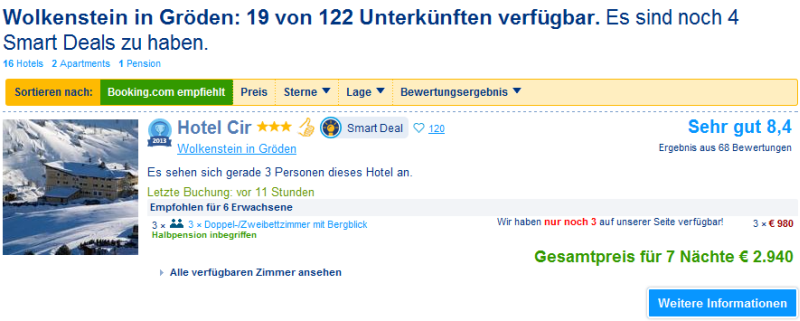 Die Geschichte mit Booking.com ist mir natürlich bekannt - jedoch habe ich ja nach Empfehlungen bezgl. Ortschaften gefragt und die HP sollte ja mit inbegriffen sein - das habe ich so bei Booking nicht gefunden..