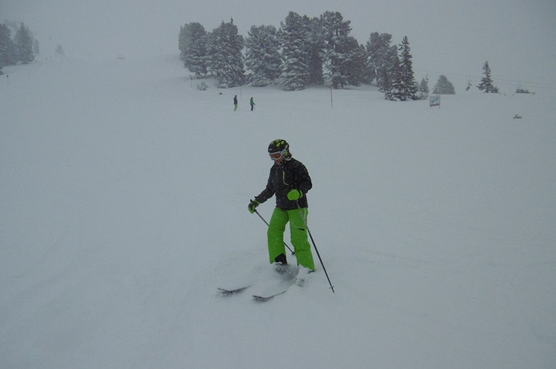 Da man in Obertauern leider aufgrund fehlender Konturen wenig sieht, zieht es uns an solchen Tagen meist weiter runter z.B. auf die Reiteralm. Dort gehen die meisten Pisten durch den Wald und man hat deutlich bessere Sicht. Hierzu braucht man dann aber die SSSC und ggf. Ketten um Abends wieder nach Obertauern zu kommen.