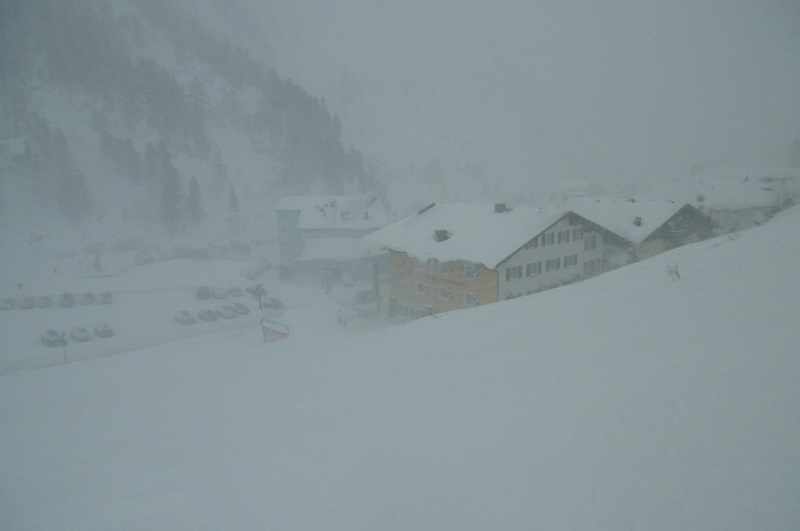 Vorm Hotel wurden erste Absetzbewegungen von Gästen registriert. Autos wurden ausgebuddelt und Ski beim Verleih retourniert. Andere Gäste der Spätstarter-Fraktion machten sich bereit und waren auf Erlebnisberichte erpicht. Der Wind hatte nun in Böen Sturmstärke erreicht. Die Zehnerkar-Bahn hatte dann den Betrieb eingestellt. Die GWKB machte nur noch langsame Fahrt.