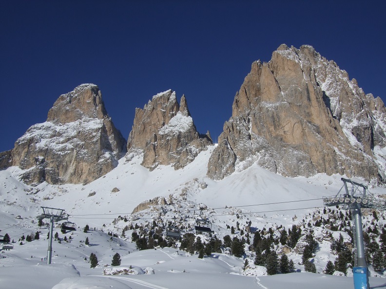 Am Sellapass stand auch schon ein Hecktriebler ohne Ketten quer. Große Völkerwanderungen auf den Pisten.