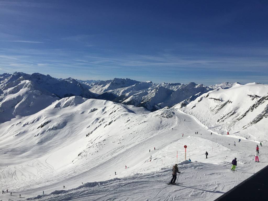 Das Wetter besserte sich und ein Ausflug zum Golm stand an. Bis auf den Außergolm war alles geöffnet und lies sich bei Superwetter bestens fahren. Die mühsam gelernten Fertigkeiten kehrten bei den nun deutlich besseren Bedingungen (Piste und Sicht) auch wieder zurück.Es war sehr leer auf den Pisten, Liften und Hütten.