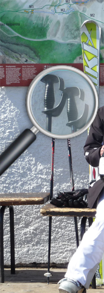 Persönlich finde ich es, z.B. auch beim Abstellen in der Skihütte etc., halt am einfachsten, sie Stöcke mit der Schlaufe über die Skispitzen zu hängen. So kann ich z.B. auch Ski und Stöcke mit einer Hand tragen, während ich an der Talstation zur Gondel gehe und mit der andern Hand in meiner Tasche wühle, die Nase putze, meine Frau anrufe oder was auch immer. Ich kenne keine Clips, die das können.drachir hat geschrieben: Für den Transport gibt es doch so ganz kleine Clips, die bei den meistens Stöcken schon dran sind.