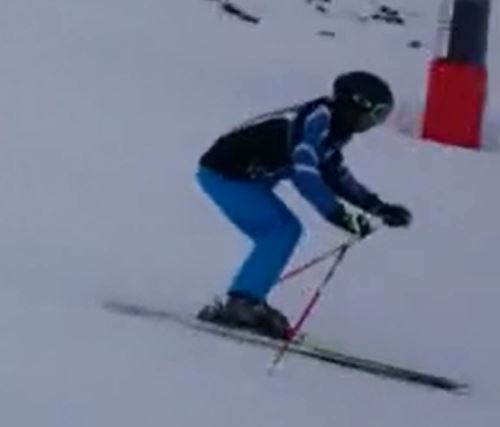 Meine Meinung ist zwar vollkommen unqualifiziert, aber ich sag sie trotzdem: Ich sehe das genau wie Moni. Deine Schwünge sehen für mich schon viel besser aus, auch wenn du natürlich nach wie vor noch zu weit hinten sitzt. Persönlich habe ich etwas den Eindruck, dass du deinen Rücken im unteren Bereich etwas zu gerade durchstreckst ("hohles Kreuz") und dadurch deinen Hintern zusätzlich nach hinten drückst. Ev. würde deine Position besser werden, wenn du versuchst, im unteren Rücken etwas "runder" zu werden. Dann sollte die Hüfte auch etwas nach vorn kommen. Ich hab dir mal als Beispiele Screenshots von zwei 0815-Fahrern angehängt, die meines Erachtens richtig auf dem Ski stehen. (Aber aufgepasst: Ich bin kein Skilehrer und habe die Erfahrung gemacht, dass alles, was ich zu sehen glaube, grundfalsch ist!)