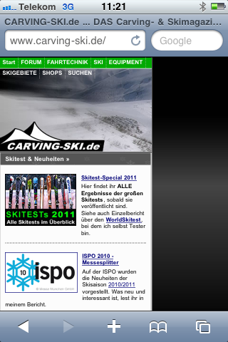 Wenn ihr bisher per iPhone / Smartphone auf carving-ski.de zu gegriffen habt, wurde die Seite in "Vollansicht" - also mit sehr kleiner, unlesbarer Schriftart - angezeigt.
