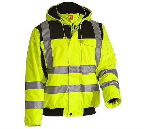 Würden unsere Jungs anstelle einer Weste eine komplette Signaljacke tragen, wären sie natürlich bedeutend auffälliger gekleidet. Damit diese Jacke über der normale Skijacke getragen werden könnte, müsste sie natürlich genügend gross sein, damit die Beweglichkeit nicht allzu stark eingeschränkt wird. Da unsere Söhne sowieso schon eher warm angezogen sind auf der Skipiste, dürfte die Jacke natürlich nicht zu dick gefüttert sein, sonst würden sie zu stark schwitzen. Die Jacke im Anhang sieht eigentlich gar nicht so schlecht aus und würde diese Bedingungen erfüllen.