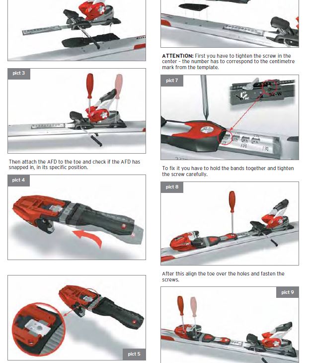 bei größeren langfristigen umstellungen solltest du die bindung runterschrauben und neu montieren (platte ist vorgebohrt!). damit schuhmitte über der markierung am ski steht