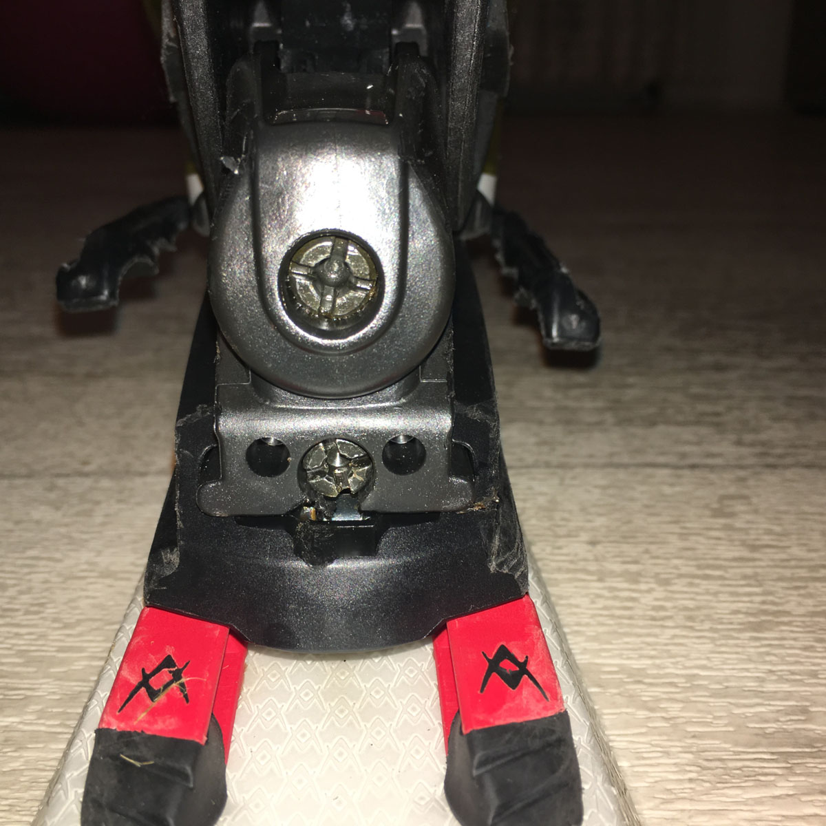 Ich habe nochmal versucht alle Details der Paarung fotografisch zu dokumentieren. Auf dem Foto habe ich die Bindung alleine abfotografiert. Ich weiß nicht ob man diese auch vorne verstellen kann, jedoch hat die Bindung vorne an der Nase nur eine Schraube für den Z-Wert, die Funktion der anderen 3 auf dem Ski kenne ich nicht. Die Verstellschraube hinten ist definitiv bis zum Anschlag herausgedreht. Auf einem der Fotos ist zu sehen wie der Ski in diesem Zustand hinten aufsetzt. Ist dies soweit ok? Der Ski geht auch so mit normalem Druck in die Bindung. Nach dem der Schuh in der Bindung ist, ist die Verstellschraube ca. 2-3mm im Gehäuse und kann dann nochmal ca. eine halbe Umdrehung hineingedreht werden.