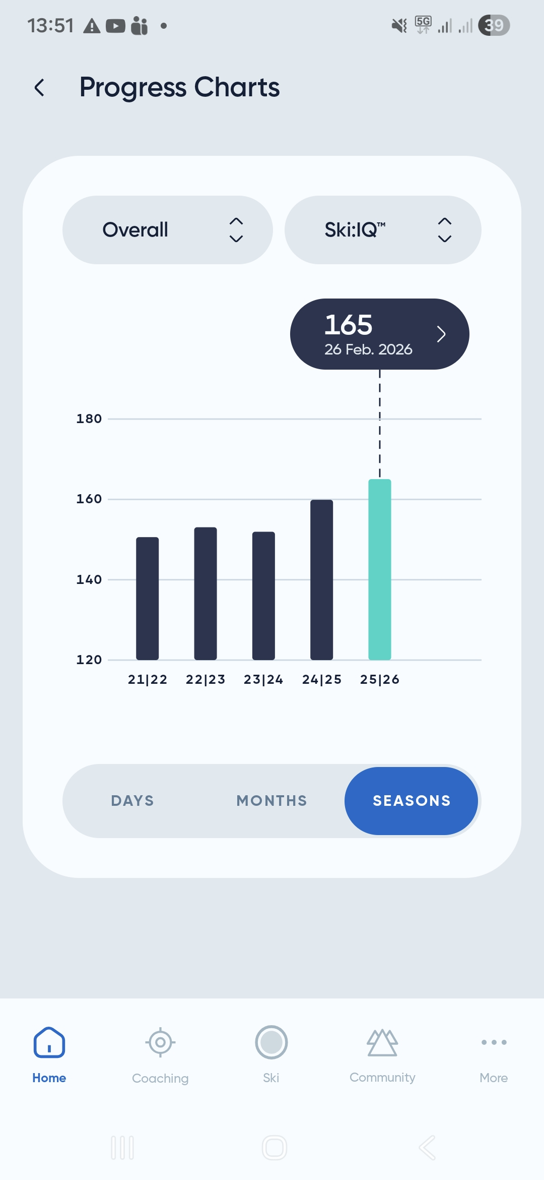 Die Steilheit der Pisten wurde auf diese Saison hin in die Berechnung des SkiIQ mit einbezogen. Bei ansonsten gleichen Messwerten erhält man nun auf steileren Pisten auch höhere SkiIQs. Das war vorher nicht der Fall.