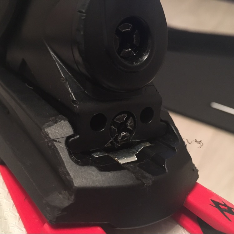 Ich glaub jetzt passt es. Habe die Bindung wie beschrieben abgezogen und unten auf exakt 355mm eingestellt. Danach den Bindung wieder eingesetzt, befestigt und den Schuh hineingedrückt. Mit dem Schraubenzieher die hintere Schraube bündig mit dem Gehäuse hineingedreht und ein paar mal noch getestet. Jetzt liegt der Schuh nicht mehr ganz so weit oben auf und macht dennoch einen stabilen Eindruck. Z-Wert habe ich auf 8 eingestellt.
